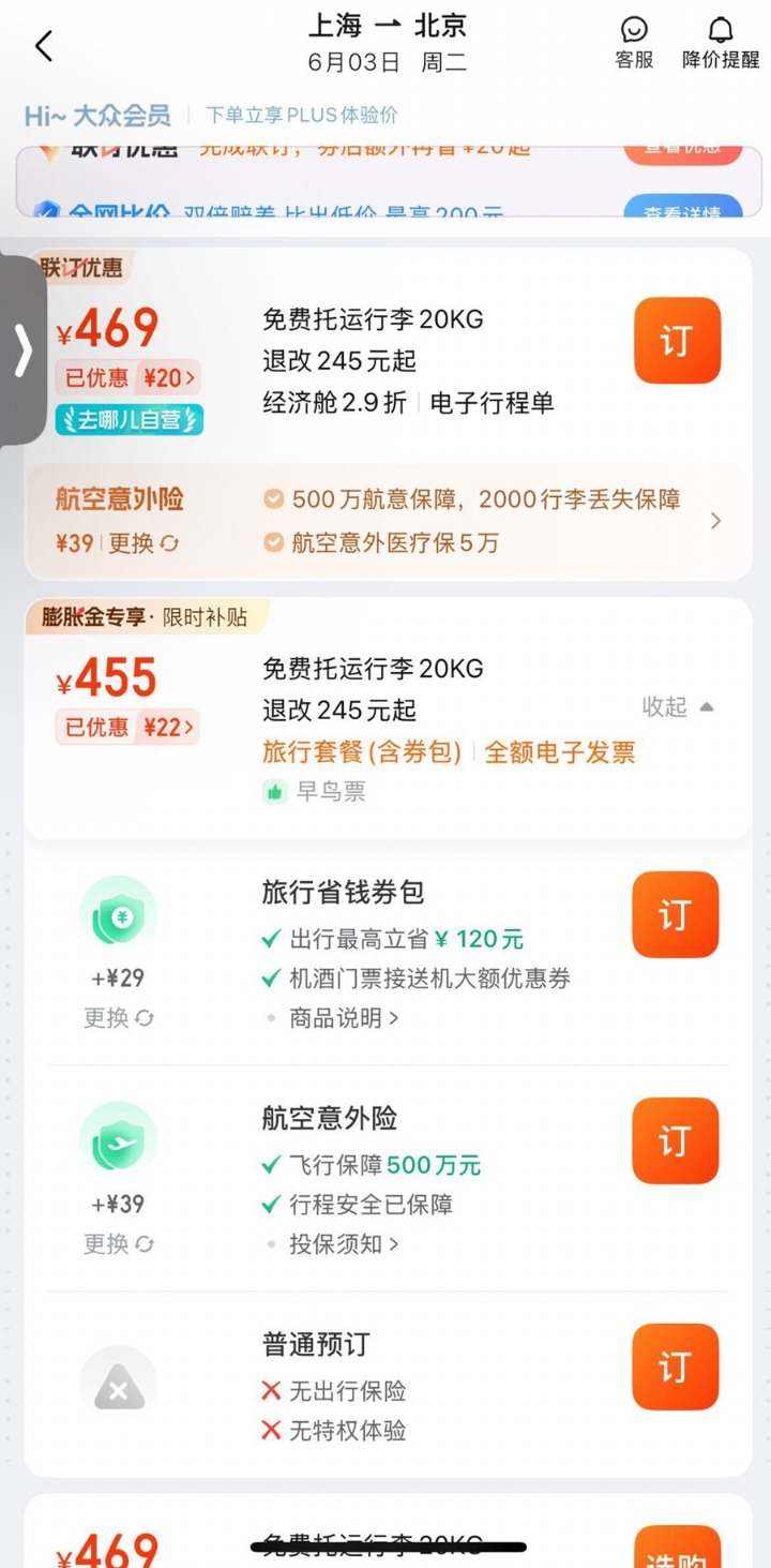 大约一周后,胡女士又在“去哪儿网”平台上购买了两张从北京飞成都的机票。“一张含税的机票价格是545元,两张就是1090元,但是。平台默认勾选了‘无忧退’,总共需要支付的价格成了1150元。”胡女士勾选“无保障”选项,确认提交后,价格莫名其妙地“跳转”成了1228元。也就是说,“无保障”反而要比“有保障”多出几十元的费用。